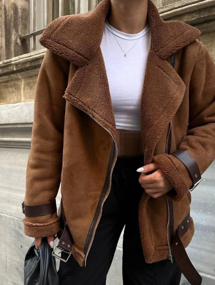 جکت جیر و خز با کمر چرم